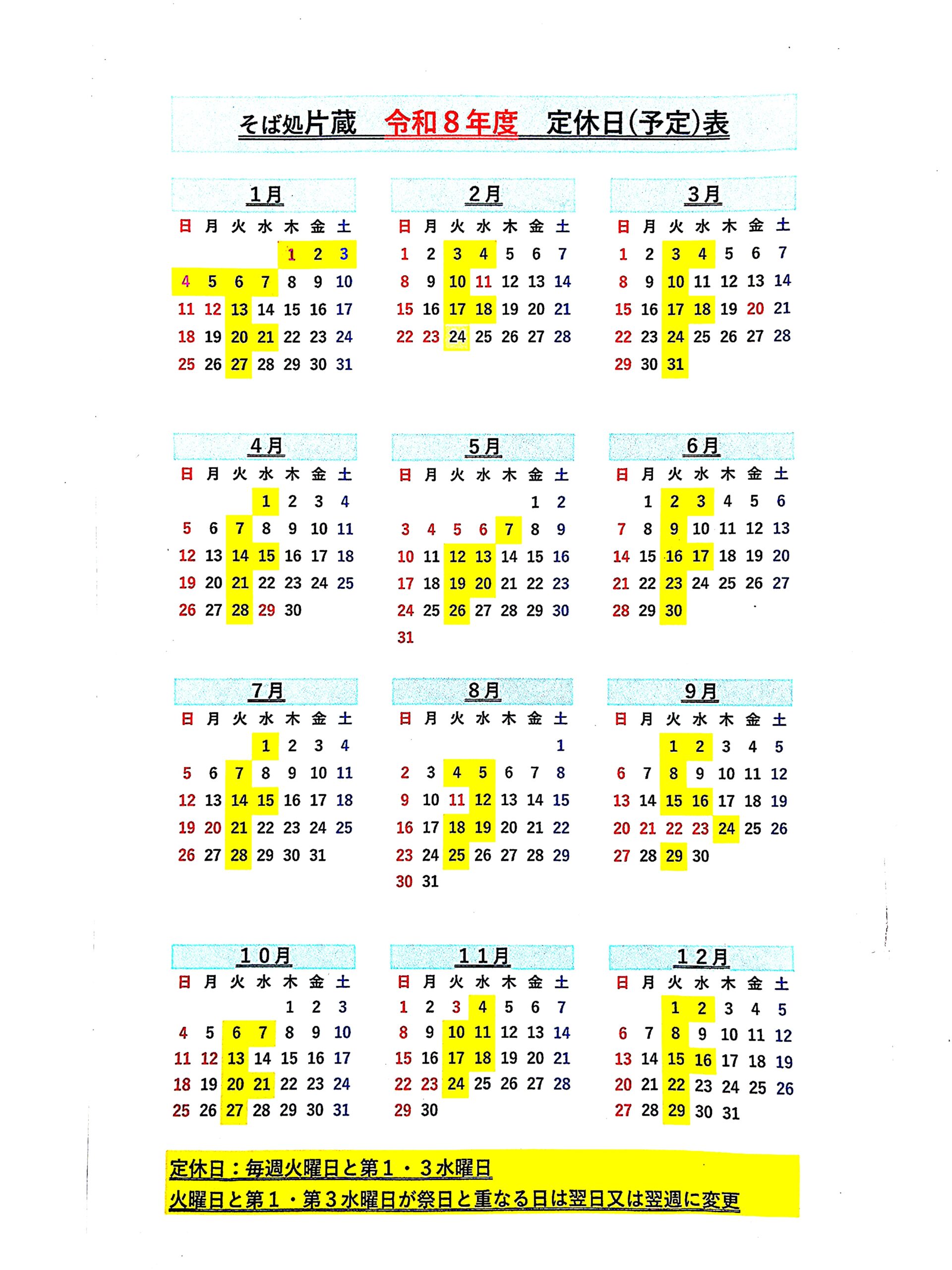 毎週火曜日・第1・第3水曜日